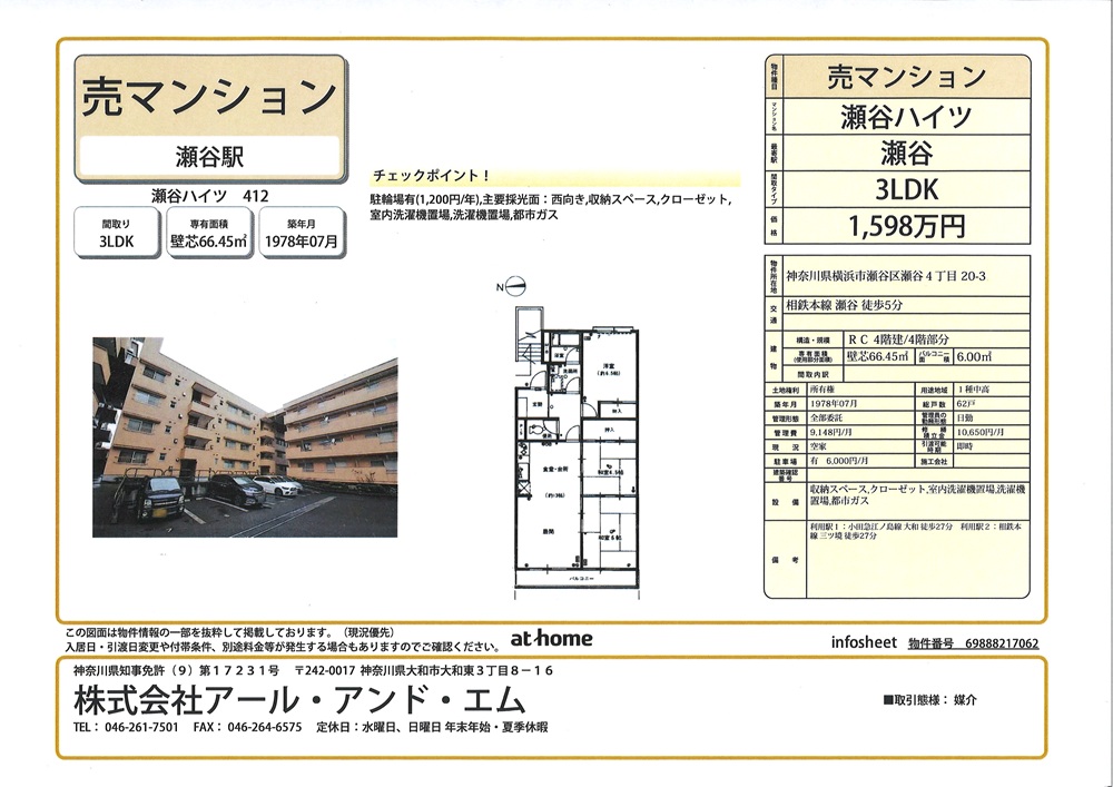 売マンション 3LDK 瀬谷ハイツ